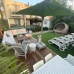 Den strandnära Sunshine Villa Luxury Garden Pernera Protaras, som ligger inom 7 minuters gångavstånd från Anastasia Aquamania Waterpark, har en pool med uteplats. Villan med 3 sovrum och 3 badrum har utsikt över trädgården och ligger en kort bit från Kalamies strand.